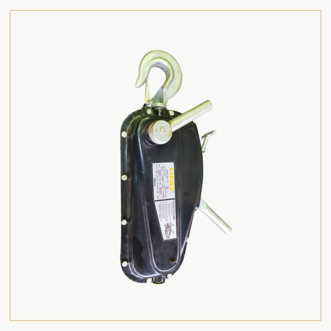 Supplied by Indian Industrial Company, the Vipro Pulling & Lifting Machine is a compact, manual hoist ideal for lifting and pulling loads up to 9 tons. Lightweight, portable, and gearless, it’s perfect for construction, maintenance, and industrial use.